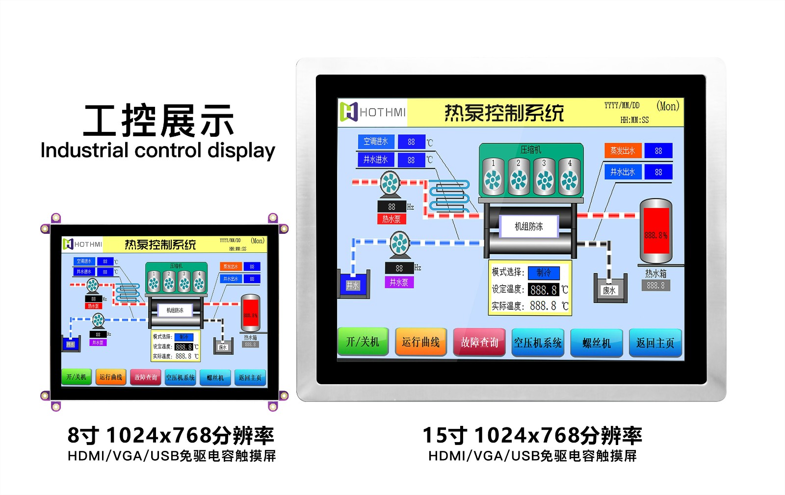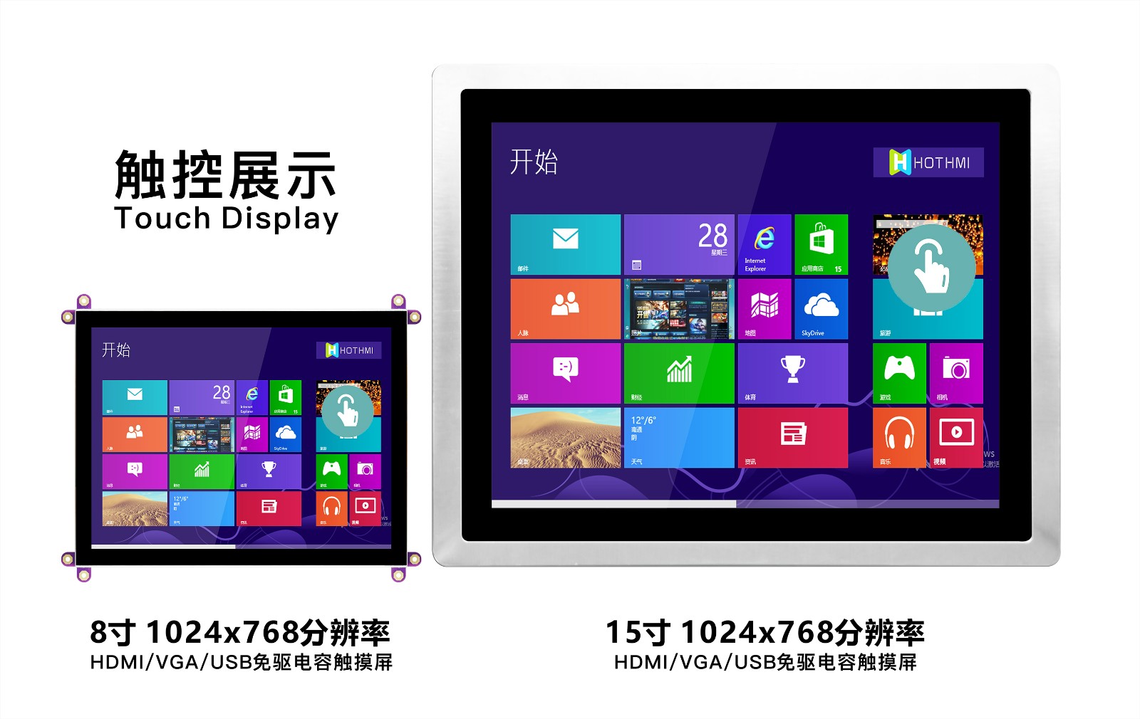 8 inch TFT  HI DISPLAY & 15 inch TFT  HI DISPLAY  1024*768 resolution ,With USB Cap Touch