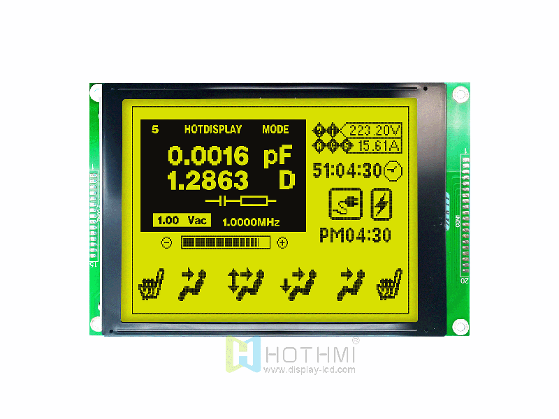 6.0 inch 320x240 Graphic LCD Dot Matrix Module | STN Gray + Yellow-Green Backlight | MCU | RA8835 | Arduino HTM320240A-11Y-A5P Graphic LCD Module 320x240 160X109X13.49 122.0x92.0 115.17x86.37 0.36x0.36 6H 16PIN MCU Anti-static ESD 8KV -20~70℃ 5.0V RA8835