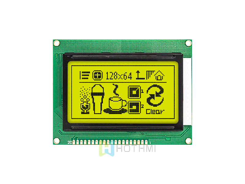 | 3.2 inch 128x64 yellow-green backlight graphic LCD module | Graphic COB module | STN+gray background | Arduino HTM12864Z-11Y-A5P | Graphic LCD Module | 128x64 |