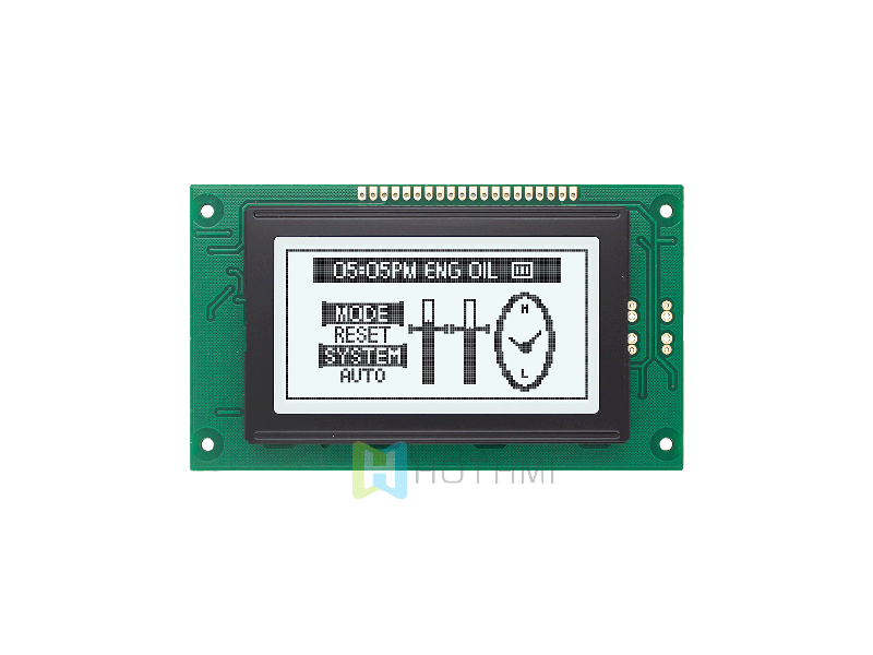 HTM-COG12864T01A-MCU8080 LCM 128x64 58.0x51.2x6.2 45.2x27.0x6.2 40.92x24.28 6H WHITE 18PIN MCU Anti-static ESD 8KV -30~80℃ 3.3v ST7567