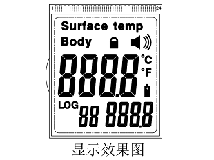 Infrared thermometer LCD HTP68459 TN-LCD 88888CF 28.5x34.5x2.8 25.5x28.5 Infrared thermometer 6H 24PIN Zebra 0~50 3.0V