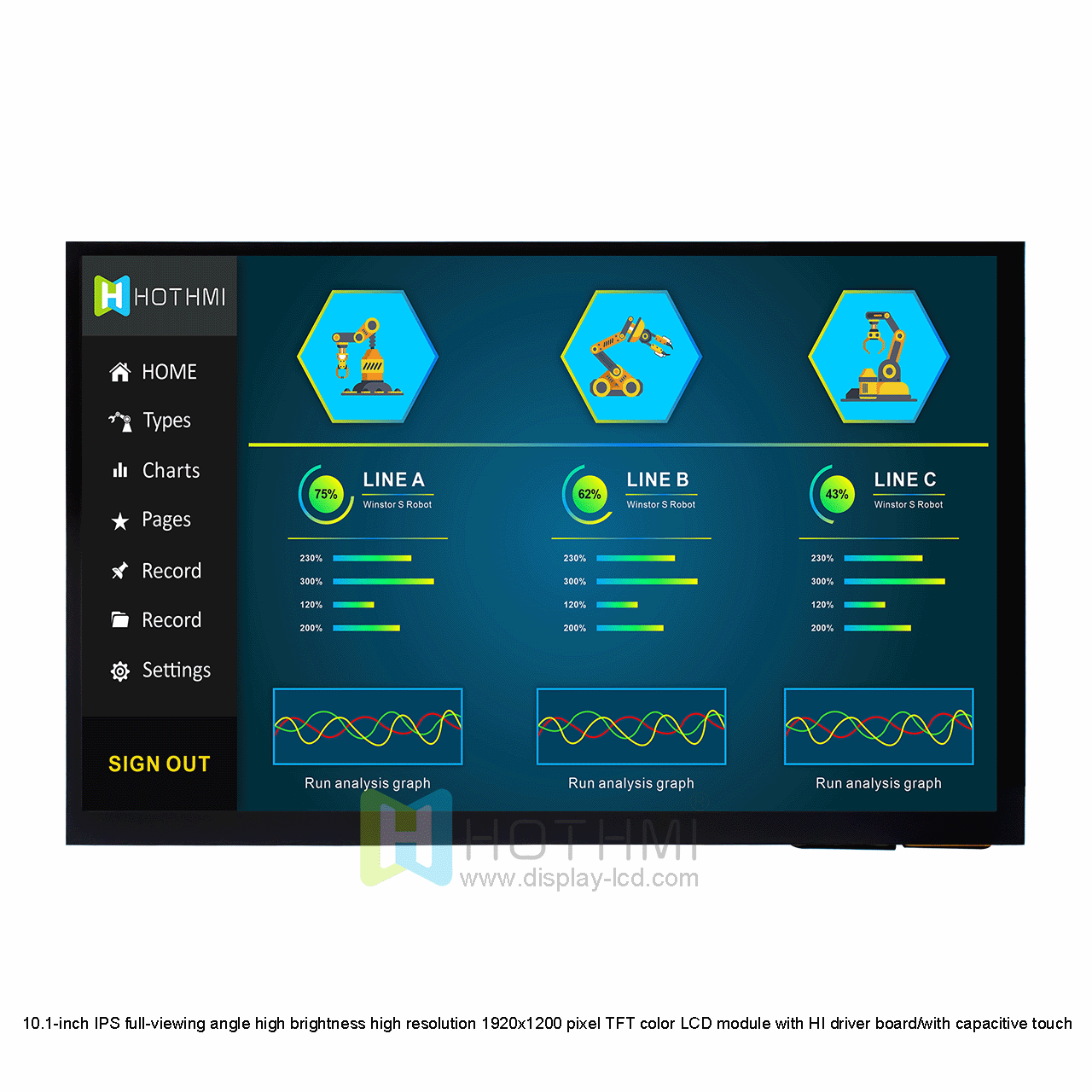HTM-H101A4-HI 是一款10.1英寸彩色液晶顯示模塊,帶HI驅(qū)動板,1920x1200分辨率,可選電阻式觸摸屏和電容式觸摸屏,帶USB接口驅(qū)動板。 為了讓客戶使用起來更加方便,我們重新設(shè)計了HI驅(qū)動板,將其與顯示屏融為一體,可以為客戶節(jié)省更多的空間。 所有材料均符合環(huán)保要求和RoHS標(biāo)準(zhǔn)。 該模塊廣泛應(yīng)用于車輛、安防、各種儀器儀表、智能設(shè)備等。適用于樹莓派等。在樹莓派上使用時,兼容Raspbian、Ubuntu、WIN10 IOT等操作系統(tǒng),并支持單片機(jī) 觸碰。 臺式電腦兼容Windows 7/8/8.1/10等系統(tǒng),可選配電容觸摸并支持10點觸控。 所有材料均符合環(huán)境要求 RoHS 標(biāo)準(zhǔn)。