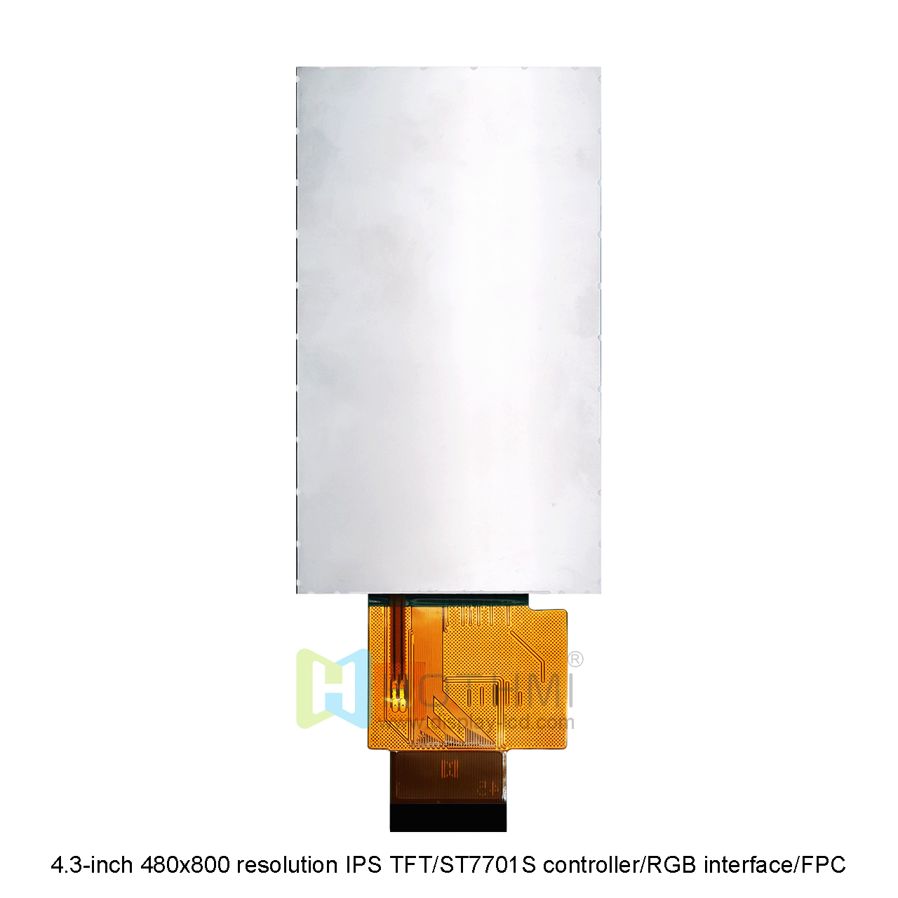 4.3英寸480x800分辨率IPS寬溫TFT/ST7701S控制器/RGB接口/FPC插接/STM32/RK TFT-H043B15WVIST4N45這款顯示屏是一款全視角顯示屏,不管你從哪個(gè)角度觀賞,都有良好的觀賞效果。由ST7701S控制,屬于寬溫工業(yè)級(jí)顯示屏,工作溫度范圍為-20攝氏度至+70攝氏度。這款型號(hào)是采用FPC的連接方式,F(xiàn)PC需連接器。只需用我們的可選焊接 FPC 連接器進(jìn)行連接,易于插入或移除。此款顯示屏它的亮度為 450cd/m2。如果您需要更高的亮度,我們可以通過(guò)調(diào)整背光的排列和數(shù)量為您實(shí)現(xiàn)。這款型號(hào)是不帶觸摸版本,同款產(chǎn)品我們還提供帶電容觸摸的型號(hào)。