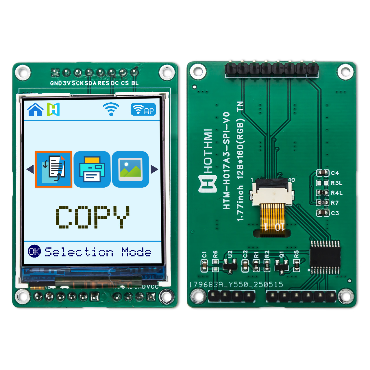 這款1.7 英寸 TFT LCD 顯示模塊,提供 128 (RGB) x 160 像素的分辨率,其默認顯示方向為 12 點鐘方向。模塊核心采用 ST7735S 驅(qū)動芯片,并內(nèi)置了必要的驅(qū)動電路。其工作電壓范圍為 2.5V 至 3.3V (VCI),通過標準的 SPI(3線或4線)接口進行通信與控制,該模塊在 -30°C 至 +80°C 的環(huán)境下可正常工作,儲存溫度范圍為 -20°C 至 +70°C。在典型恒流測試條件下,其液晶模組亮度可達 850 cd/m2。超高品質(zhì)顯示屏加上高亮度設計,使得這款顯示模塊成為陽光下可視的IPS全視角的顯示屏。
