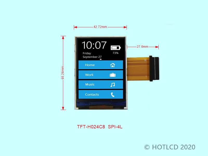 2.4寸TFT/240*320分辨率/SPI接口/TFT-H024C8QVTST2N18
