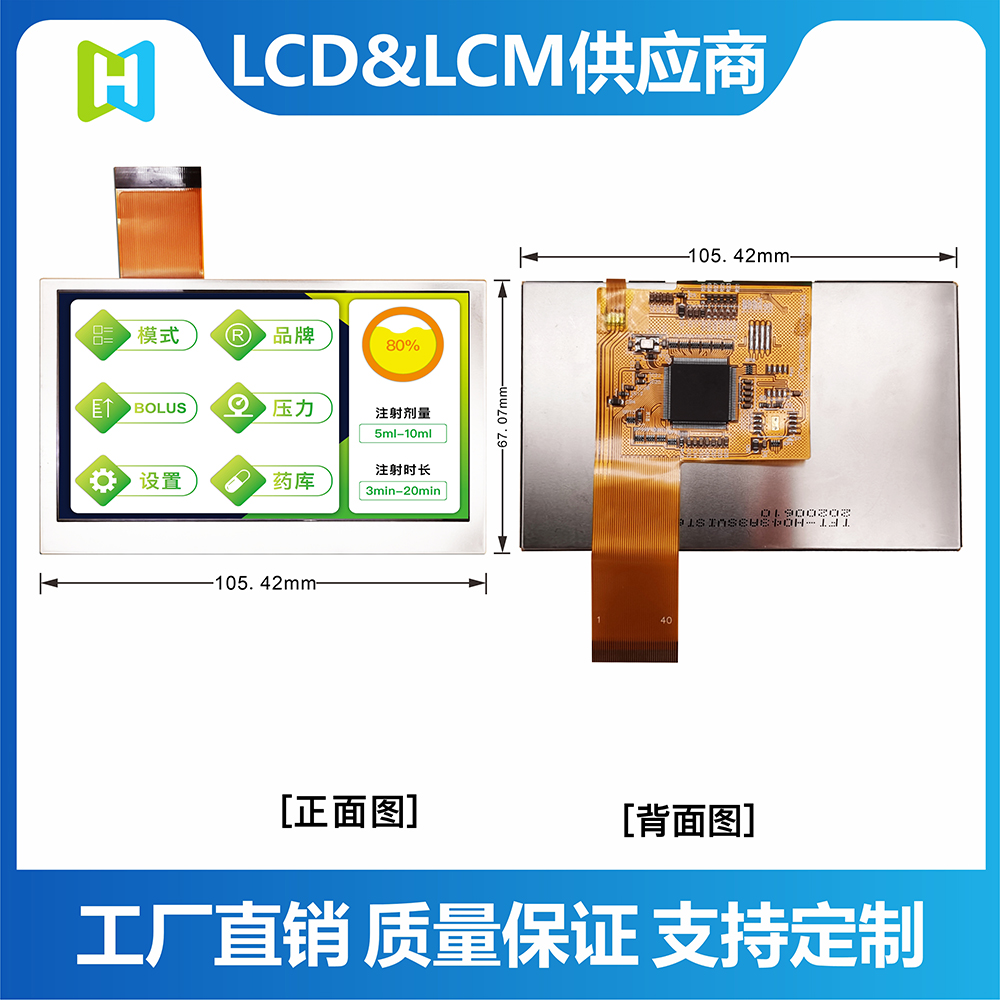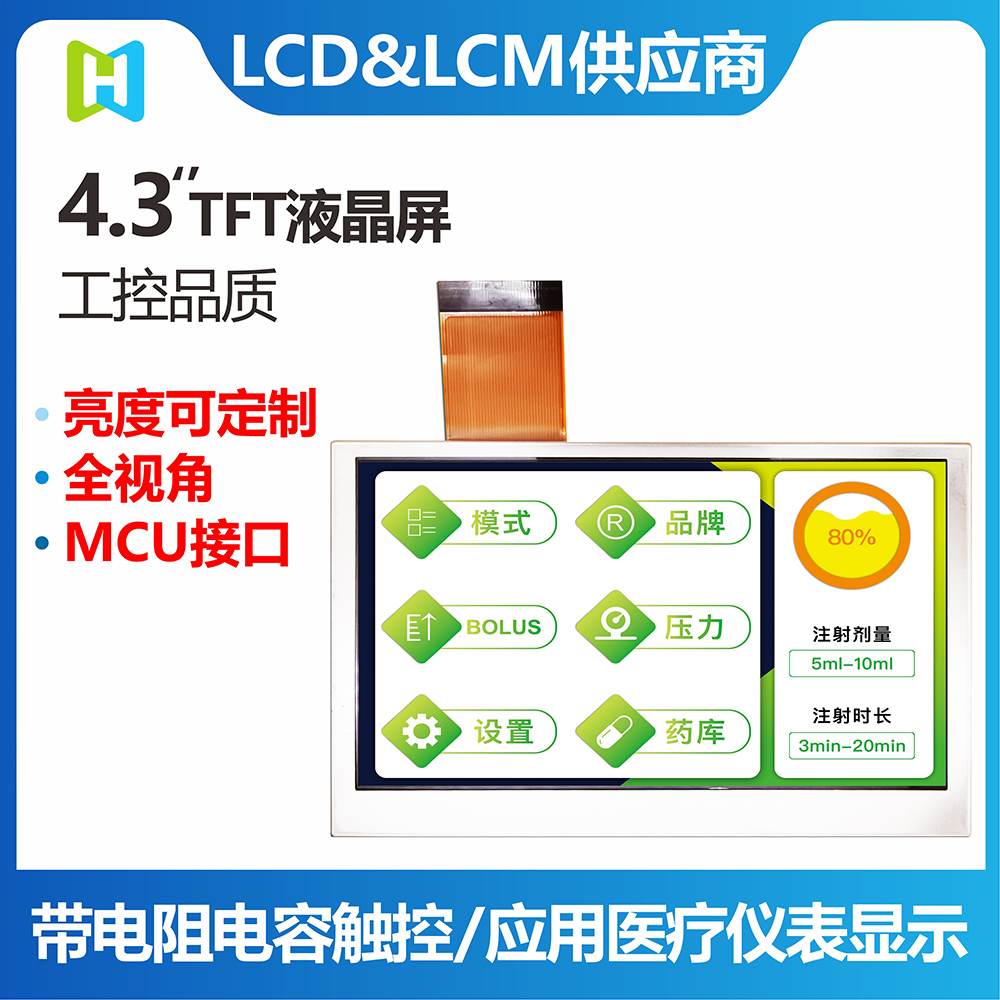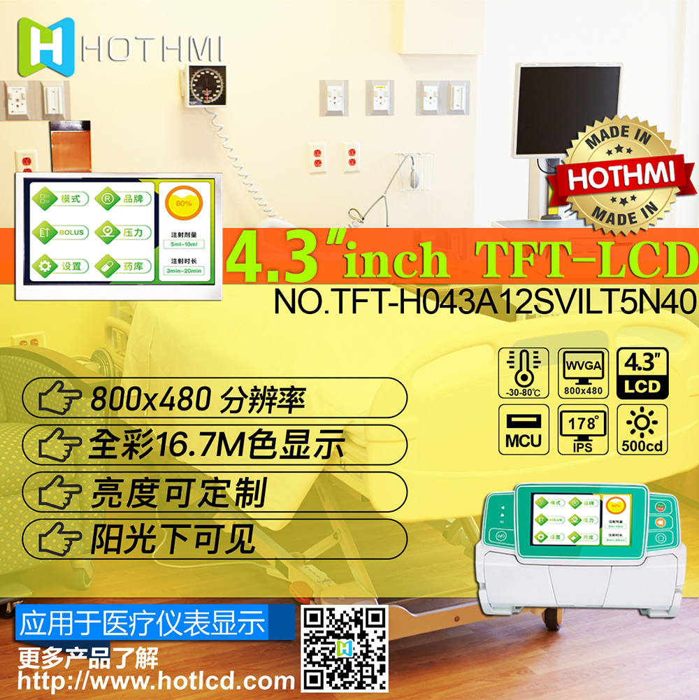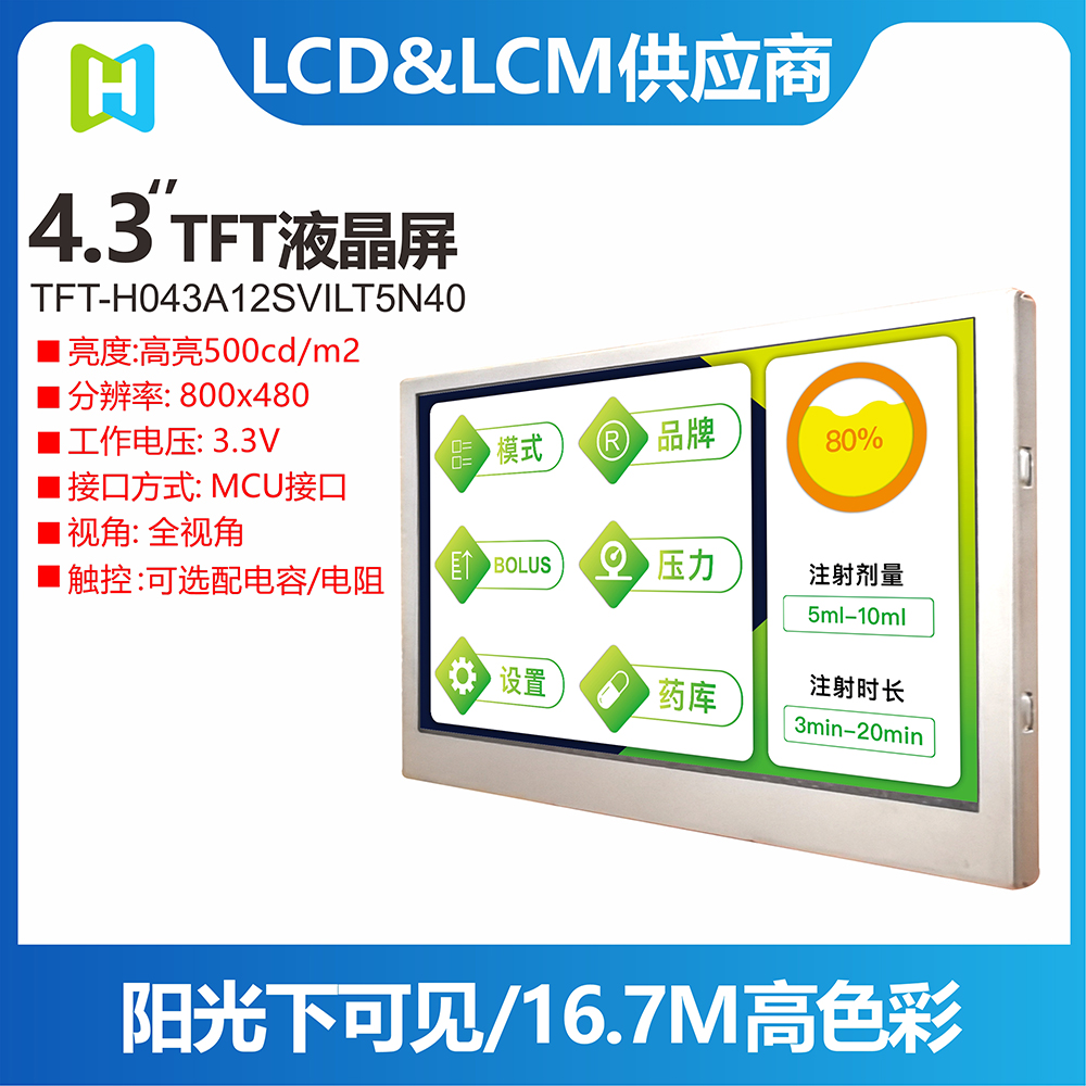 H043A12SVILT5N40是一款4.3寸超廣溫IPS-TFT搭載投射電容式觸控面板(PCAP)顯示器模塊,分辨率為800x480像素。模塊內(nèi)建ST7262+HT7381(TFT),驅動器IC,支持MCU接口。 H043A12SVILT5N40采用IPS面板技術具有廣視角左:80 / 右:80 / 上:80 / 下:80度 (典型值);高對比度度800:1(典型值),亮度400 nits(典型值),模塊采用亮面玻璃,屏幕長寬比為16:9。此款搭載的電容式觸控面板內(nèi)建GT911(CTP) IC,支持I2C接口,支持多點觸控功能。 H043A12SVILT5N40電源電壓 (VCC) 為3.0V至~3.6V,典型值為3.3V,模塊工作溫度為-30℃~+80℃,儲存溫度為-30℃~+80℃。此外,H043A1型號同時提供無觸控選項,產(chǎn)品料號為H043A12SVILT5N40。