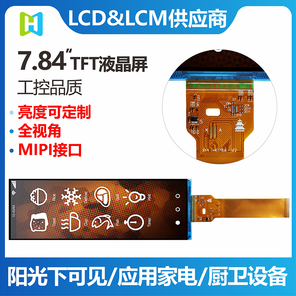TFT- H078A1ZAISTN40是一款7.84寸采用IPS面板技術(shù)的TFT液晶顯示器模塊。此款TFT-LCD分辨率400 x 1280 pixels。TFT- H078A1ZAISTN40模塊內(nèi)置ST7703 driver IC,支持MIPI接口,對比度700 (典型值),模塊亮度為700 nits(典型值)。H078A1采用IPS面板技術(shù),視角比TN玻璃更廣范圍為左: 80 / 右: 80 / 上: 80 / 下: 80 度,色彩鮮明,具有飽和自然的優(yōu)質(zhì)畫面。H078A1模塊的驅(qū)動電壓為3.3V,平常黑/透射式LCD,霧面玻璃,屏幕長寬比3:1。。此款模塊的工作溫度是-20℃ 至 +70℃,儲存溫度是 -30℃ 至 +80℃。如果客戶產(chǎn)品應(yīng)用需要使用高亮TFT,可選用TFT- H078A1ZAISTN40模塊,其模塊亮度為700 nits (典型值)。