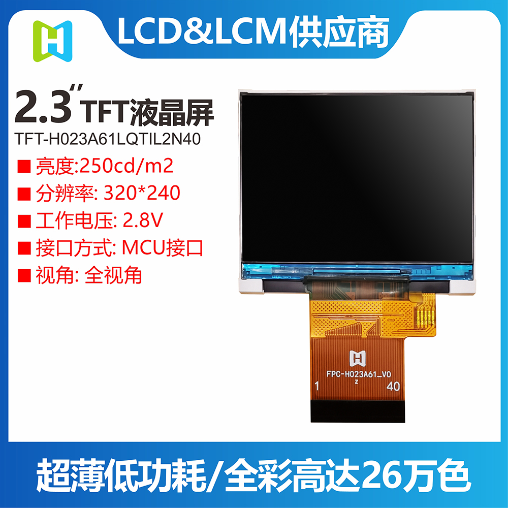 • 型號: 2.3寸TFT橫屏|320*240分辨率|12H視角|8080 MCU 8/16-Bit接口|TFT-H023A61LQTIL2N40