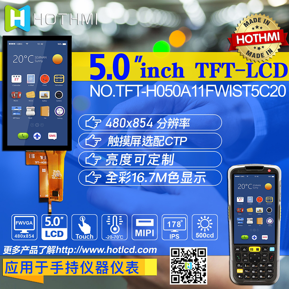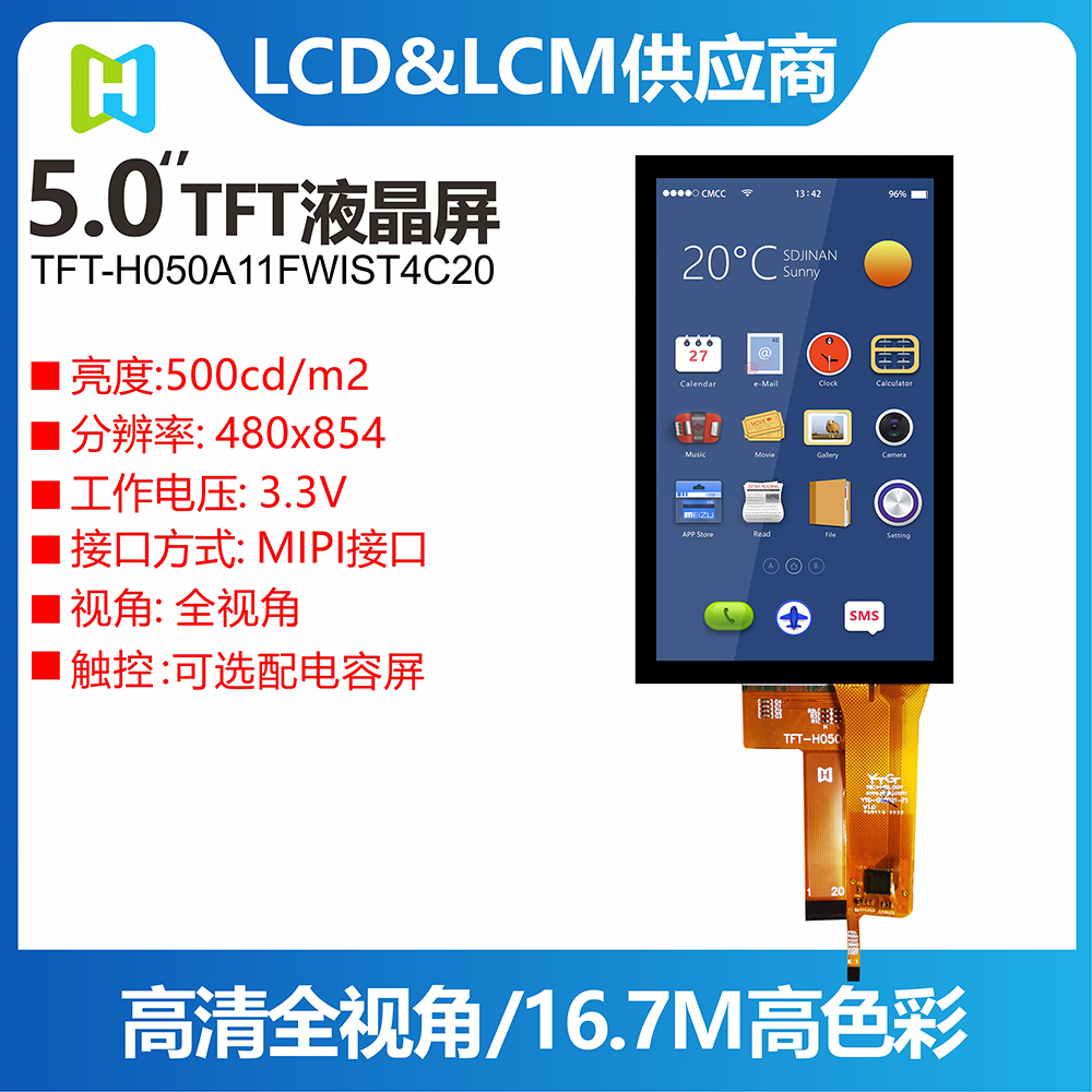 TFT-H050A11FWIST4C20 是一款 5.0 英寸寬溫 IPS TFT-LCD 顯示器,帶有投射電容式觸摸屏,分辨率為 480x854 像素。 模塊內置ST7701驅動IC,支持MIPI接口。 TFT-H050A11FWIST4C20采用IPS面板,具有視角更廣的優(yōu)勢,左:80/右:80/上:80/下:80度(典型),對比度800:1(典型),亮度500尼特(典型) ) 值),眩光面板,16:9 縱橫比。 觸摸屏內置GT911 IC,支持I2C接口和多點觸控功能。 H050A11 型號具有投射電容式觸控面板 (PCAP),但沒有觸控面板選項 (TFT-H050A11FWIST5N20)。 TFT-H050A11FWIST4C20的供電電壓(VCC)為3.0V至3.6V,典型值為3.3V。 它可以在 -20°C 到 +70°C 的溫度和 -30°C 到 +80°C 的存儲溫度下工作。