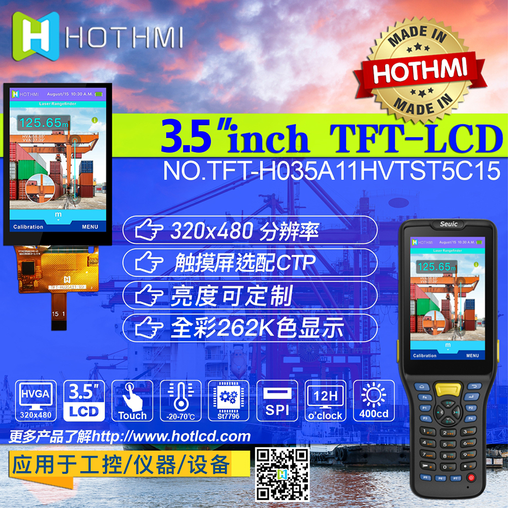 產(chǎn)品說明 TFT-H035A11HVTST5C15 是一款 3.5 英寸寬溫 IPS TFT-LCD 顯示器,帶有投射電容式觸摸屏,分辨率為 320X480 像素。 模塊內(nèi)置ST7796驅(qū)動IC,支持SPI接口。 TFT-H035A11HVTST5C15采用IPS面板,具有視角更廣的優(yōu)勢,左:80/右:80/上:80/下:80度(典型值),對比度800:1(典型值),亮度400尼特 (典型值)值),眩光面板,1:1.5 縱橫比。 支持I2C接口和單點(diǎn)觸控功能。 H035A11型號有投射電容式觸控面板(PCAP),TFT-H035A11HVTST5C15的供電電壓(VCC)為3.3V。 它可以在 -20°C 至 +70°C 的溫度和 -30°C 至 +80°C 的存儲溫度下運(yùn)行。