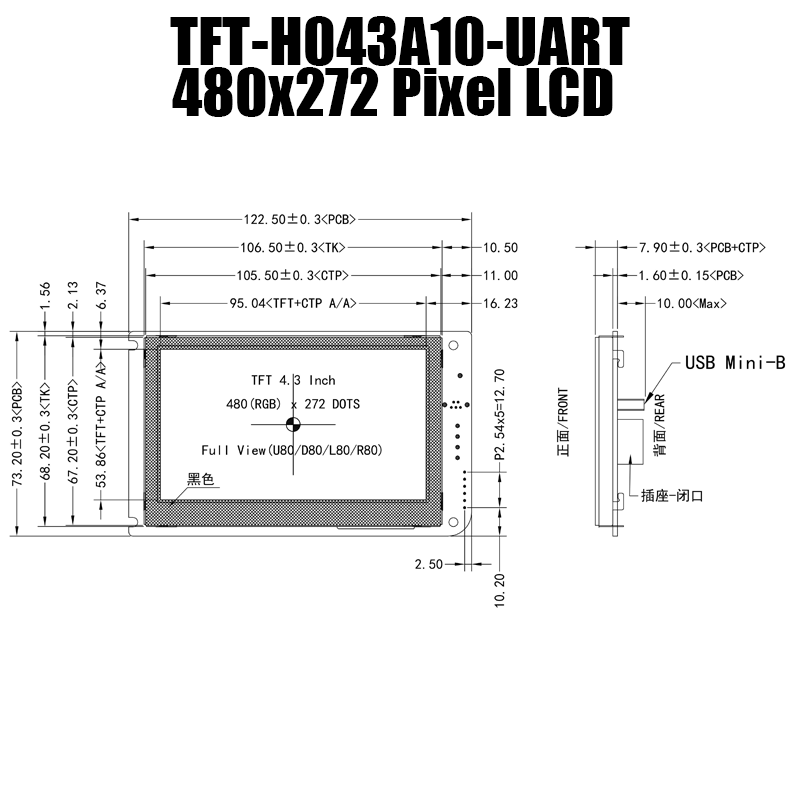 彩色TFT顯示屏尺寸:4.3英寸(對(duì)角線)