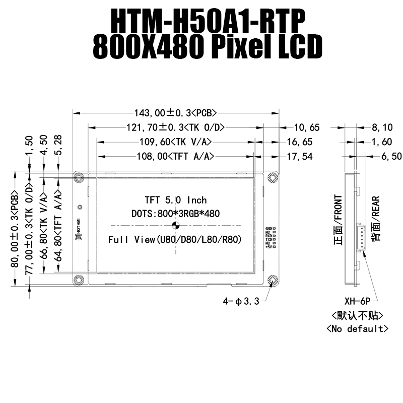 5英寸對(duì)角線彩色TFT屏,標(biāo)配無觸摸/電阻觸摸/電容觸摸