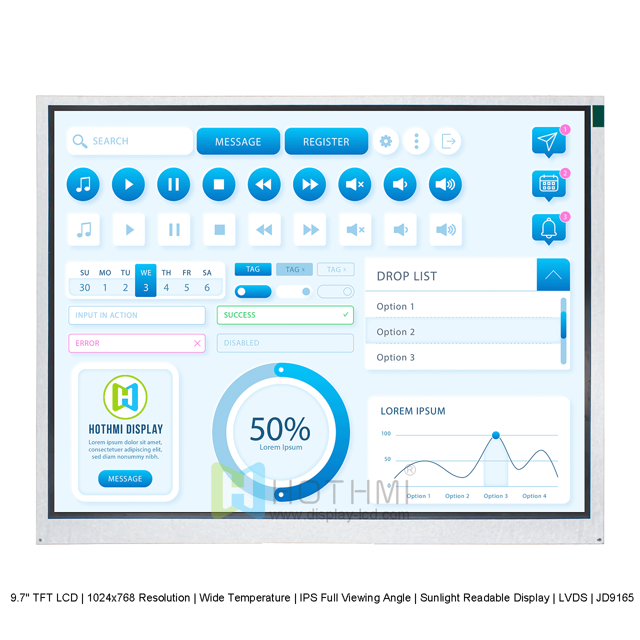 這款 9.7英寸的TFT LCD 分辨率為 1024x768,配備強(qiáng)大的背光,亮度為 500 cd/m2,在明亮的照明條件下(包括直射陽光)提供可視性性。該液晶顯示器符合 RoHS 標(biāo)準(zhǔn),并與 Arduino 和其他類似板兼容。 一些行業(yè)和應(yīng)用包括工業(yè)、商業(yè)、控制、PLC、戶外手持設(shè)備、航空、消費(fèi)電子產(chǎn)品、醫(yī)療設(shè)備、汽車儀表板、信息亭、現(xiàn)場(chǎng)工程、農(nóng)業(yè)、戶外運(yùn)動(dòng)設(shè)備等等??刂破鲀?yōu)化了顯示器的功能,確保運(yùn)行流暢并準(zhǔn)確呈現(xiàn)圖像和圖形。