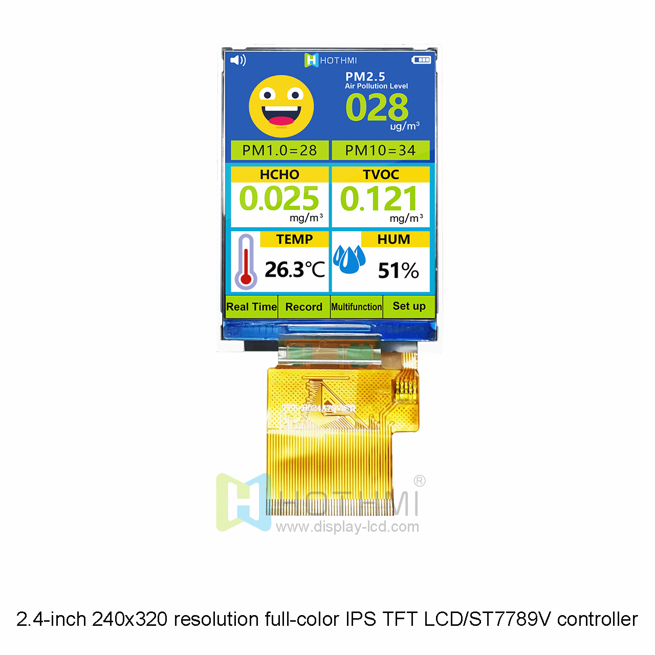 這款標準的 2.4英寸240x320分辨率全彩TFT LCD/IPS全視角高亮度顯示屏/ST7789V控制器 TFT-H024A7QVIST8N45的 TFT LCD 顯示屏的分辨率為240x320 像素,全視角顯示屏,標準亮度 LED 背光為 800 尼特。這款透射式 LCD 體積小巧,使用 2.8 低壓電源,這款顯示屏在手持設備、