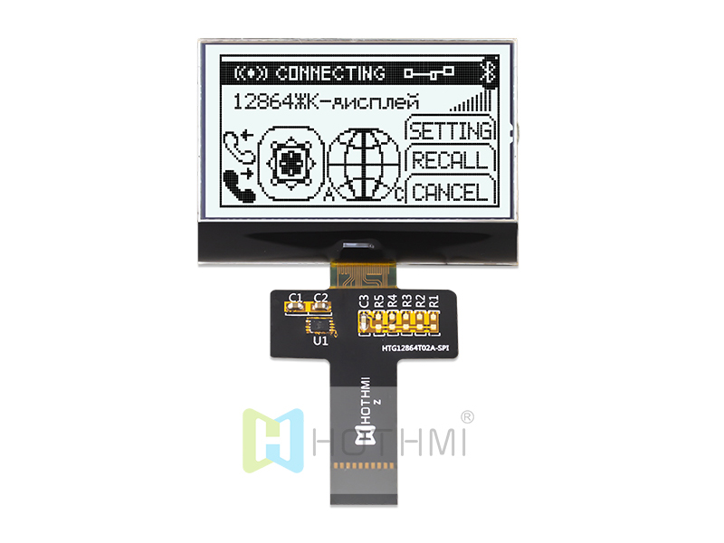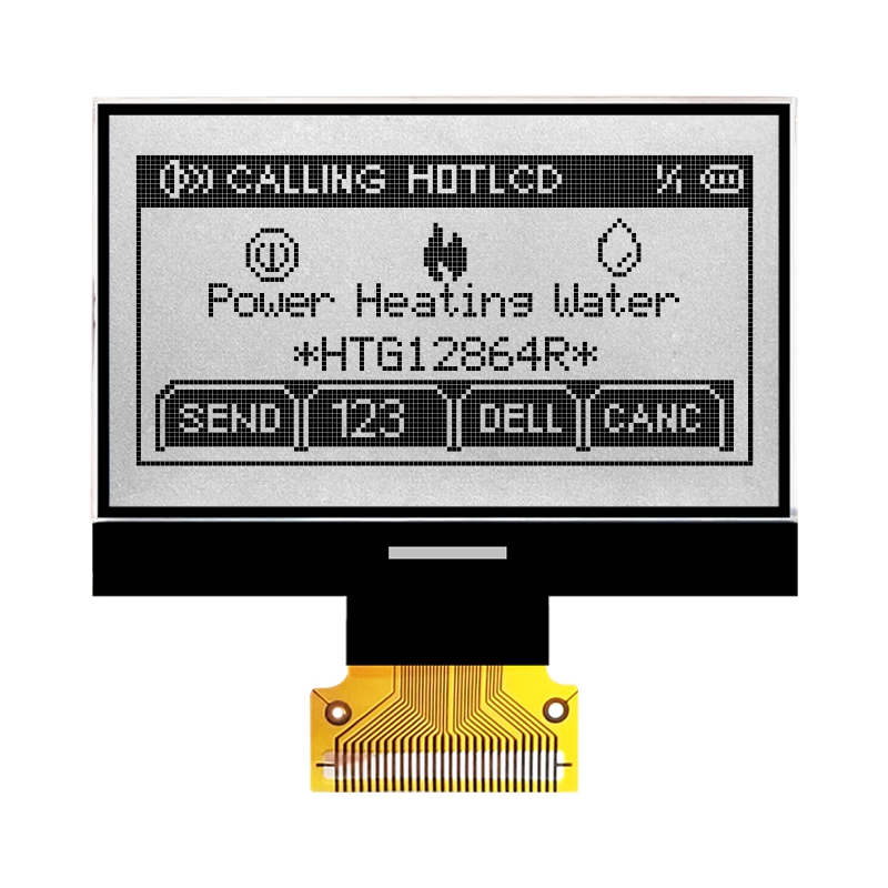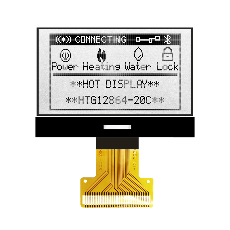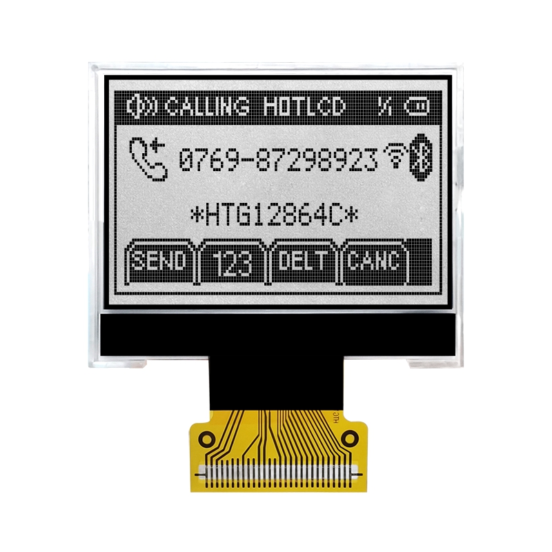 128x64 COG點(diǎn)陣液晶屏/HTG12864R COG 128x64 49.0x35.5x2.8 45.2x26.9 40.92x24.38 0.38x0.32 6H 白光 FPC-28PIN MCU -20~70℃ 3.3v ST7565R