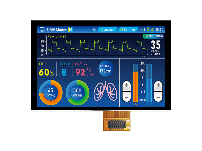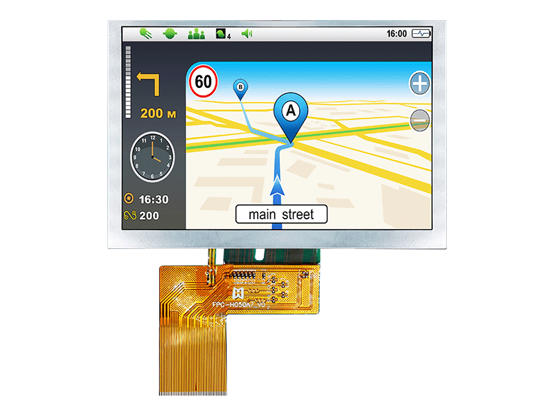 | 5寸 800x480 顯示屏 IPS 陽光下可讀顯示器 TFT LCD 顯示屏制造商 TFT-H050A7SVISTKN40 | TFT橫屏 | 800x480 |