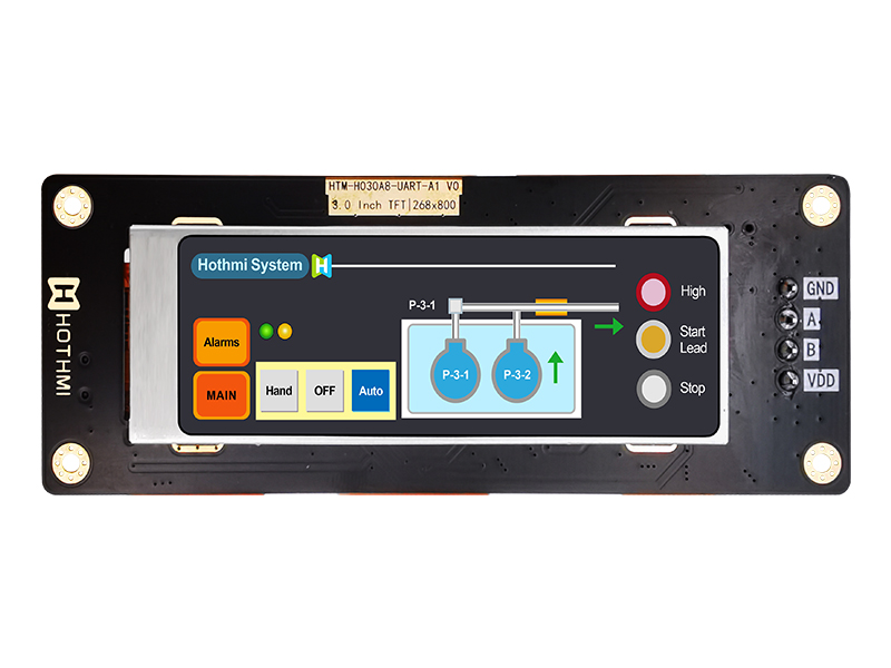 3寸 UART TFT LCD 268x800 顯示屏 TFT 模塊面板 帶 LCD 控制板智能屏 HTM030A8-UART TFT帶板模塊 268x800 40x110x11.15 3.0 3.0 24.12x72 全視角 800cd/m2 4pin UART/RS232 抗靜電ESD 8KV -20~70℃ 12V~24V