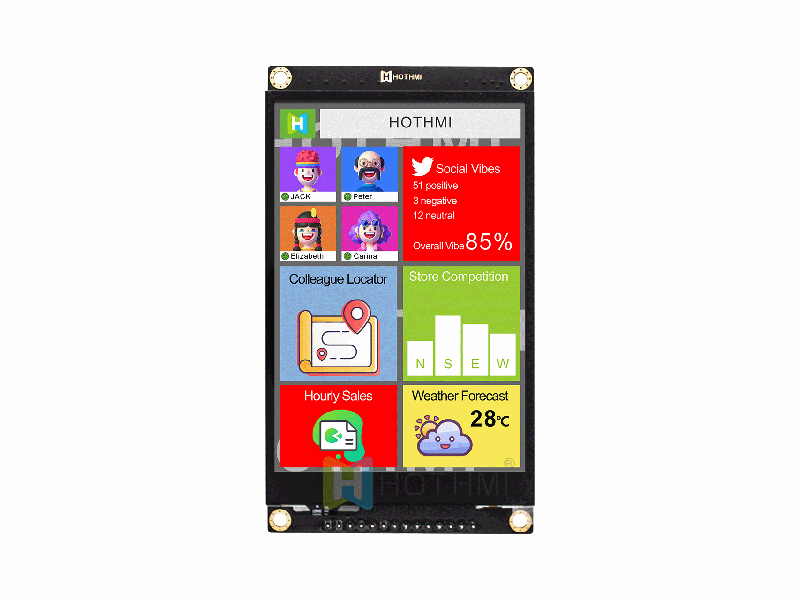 | 4英寸SPI顯示模塊,分辨率320x480,帶ST7365控制器 HTM-H040A28-SPI-A01 | TFT顯示模組 | 320x480 |